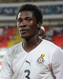 Gyan tomou balanço, partiu para a bola - e rematou à barra.