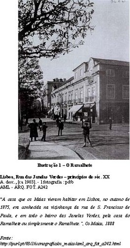 «Um momento caminharam em silêncio. Depois, na Rua das Janelas Verdes, o Alencar "quis refrescar". Entraram numa pequena venda, onde a mancha amarela de um candeeiro de petróleo destacava numa penumbra de subterrâneo, alumiando o zinco húmido do balcão, garrafas nas prateleiras, e o vulto triste da patroa com um lenço amarrado nos queixos.»