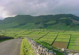 Já nos arredores, bovinos preguiçosos ruminam lentamente, ao ritmo da natureza que regressa nesta estação do ano. Molduras de basalto negro dividem campos e pastagens em cambiantes infinitos de verde.