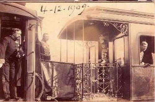 Foi a 4-12-1909, conforme se lê. O Rei de Portugal acaba de regressar de uma viagem a Inglaterra.