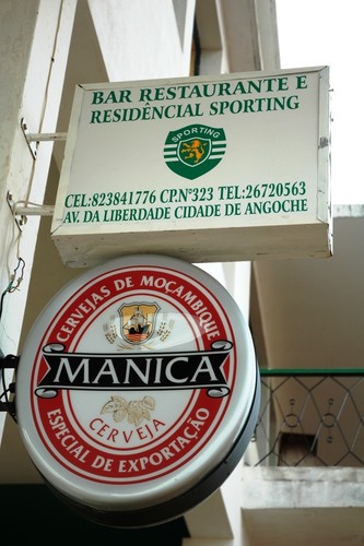 Este mesmo, o "bar restaurante residencial Sporting", ali herdeiro, talvez avatar, de um antigo clube Sporting de Angoche (ou de António Enes, ou de Parapato, não tenho a certeza sobre o nome do velho clube desportivo). Logo entrei, feliz, dessedentando-me. Depois de algumas "Impalas", acompanhadas de resumos de futebol europeu na pequena TV sobre o balcão, um luxo para os parcos clientes, visitei as instalações.