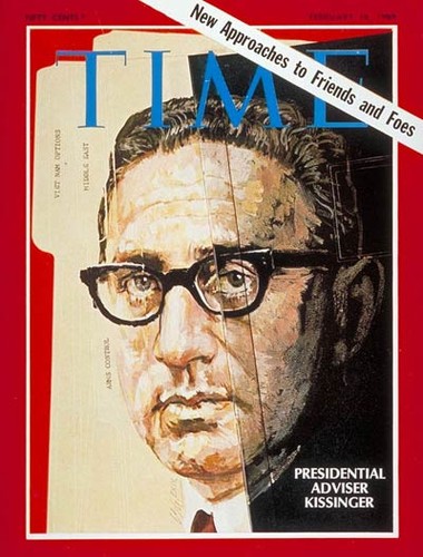 Imagem do meio: Kissinger, então estrela em ascensão na administração norte-americana, com honras de capa na revista Time em 14 de Fevereiro de 1969