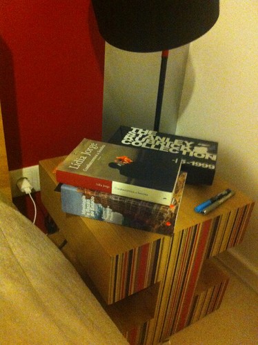 Tendo o mau hábito de ter televisão no quarto, os DVDs também marcam lugar.