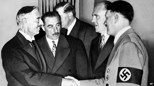 Neville Chamberlain cumprimentando Hitler em Munique (1938)