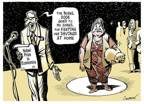 Ainda assim, até há pouco pensei que ter o meu dinheiro no banco na Holanda seria seguro. Sendo que também a Holanda está a impôr austeridade, que os depósitos bancários não estão seguros e que poderá não fazer sentido guardar Euros ou dólares (talvez yuans?) não sei se não deva antes usar as minhas poupanças para comprar alguma "commodity". O ouro está caro, o petróleo sabe-se lá o que fará. Em tempos vi num "comic" a solução: comprar drogas. Cocaína, heroína ou outras não perdem o valor em crise. Antes poderão ganhar, como forma de escape. Creio que não seria o primeiro. Quem sabe, até chego depois do fim da crise a primeiro-ministro.