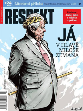 Foto (obtida através do site do The Economist): capa da revista checa Respekt, retratando o presidente Zeman como um imperador romano.
