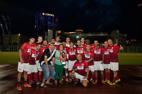 Decorreu hoje o jantar comemorativo do final da época futebolística e entrega de prémios à equipa e jogadores da Casa de Portugal em Macau. O vetusto e sempre acolhedor Clube Militar abriu as portas. Da 3ª à 2ª divisão, depois da 2ª à 1ª, foi um acumular de sucessos. Esta época foram sempre líderes e sagraram-se campeões a três jornadas do fim. Invictos e todos amadores. Para o ano a Liga de Elite (1ª divisão do futebol de Macau) espera por eles e pelos golos de Jean Perez e de Mecenas. Com mais taça ou menos taça, mais discurso ou menos discurso, fica o registo do(s) momento(s). Discurso sóbrio e adequado do Cônsul Geral de Portugal, a anteceder as palavras, convictas, da presidente da Casa de Portugal. Ali joga-se por amor à camisola. Os infatigáveis Vilar e Pelé são a prova disso.